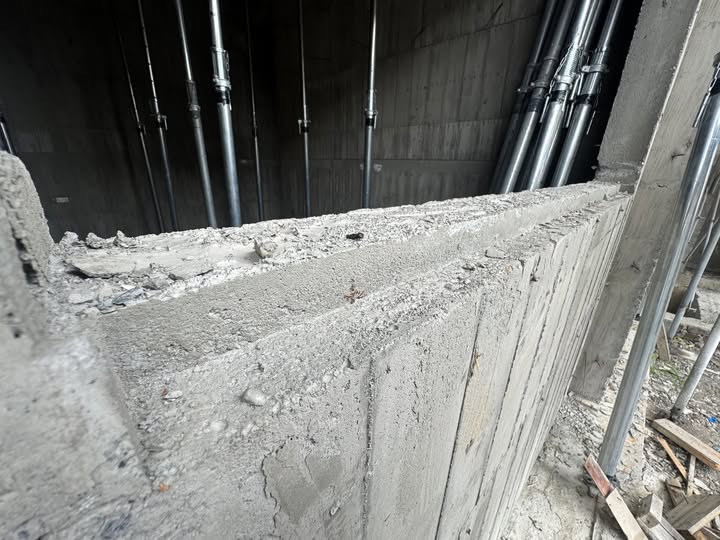 工程名稱] 心棧五期 [工程進度] 一樓結構拆模 在窗台外側的下方,我們預留了一道的溝槽。 這不是多餘的裝飾, 日後會請泥作在這邊處理成45度斜坡。 這樣做有兩個目的—— 一是加強洩水坡度,讓雨水不易停留在窗台上,減少積水問題; 二是提升防水表現,當外部裝修層因時間出現滲水時, 這道溝槽還可能成為結構層阻水的防線,不讓水進入室內。